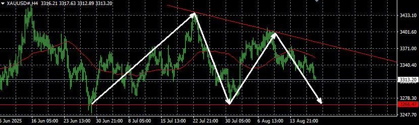 黄金四小时线持续收大阴线实体,就是任何支撑直接就是击穿,毫不犹豫的击沉 ,k线的高点也是不断的降低,从3360一线附近,斜率也是明显的向下了 ,目前下方就是悬崖峭壁的存在,反弹就是无力,均线向下运行 ,而且没有掉头的迹象,空,下方3260见